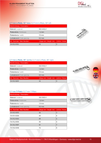 2,7 mm L-Platte, 90° rechts / 2,7 mm L-Plate, 90° right
