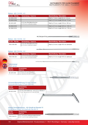 3.5 mm Tap and ø 2.5 mm Drill Bit