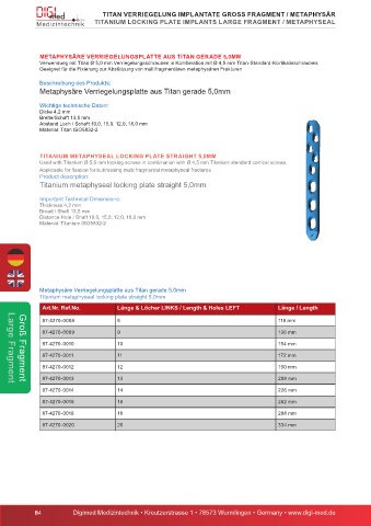 TITANIUM LOCKING PLATE IMPLANTS LARGE FRAGMENT / METAPHYSEAL